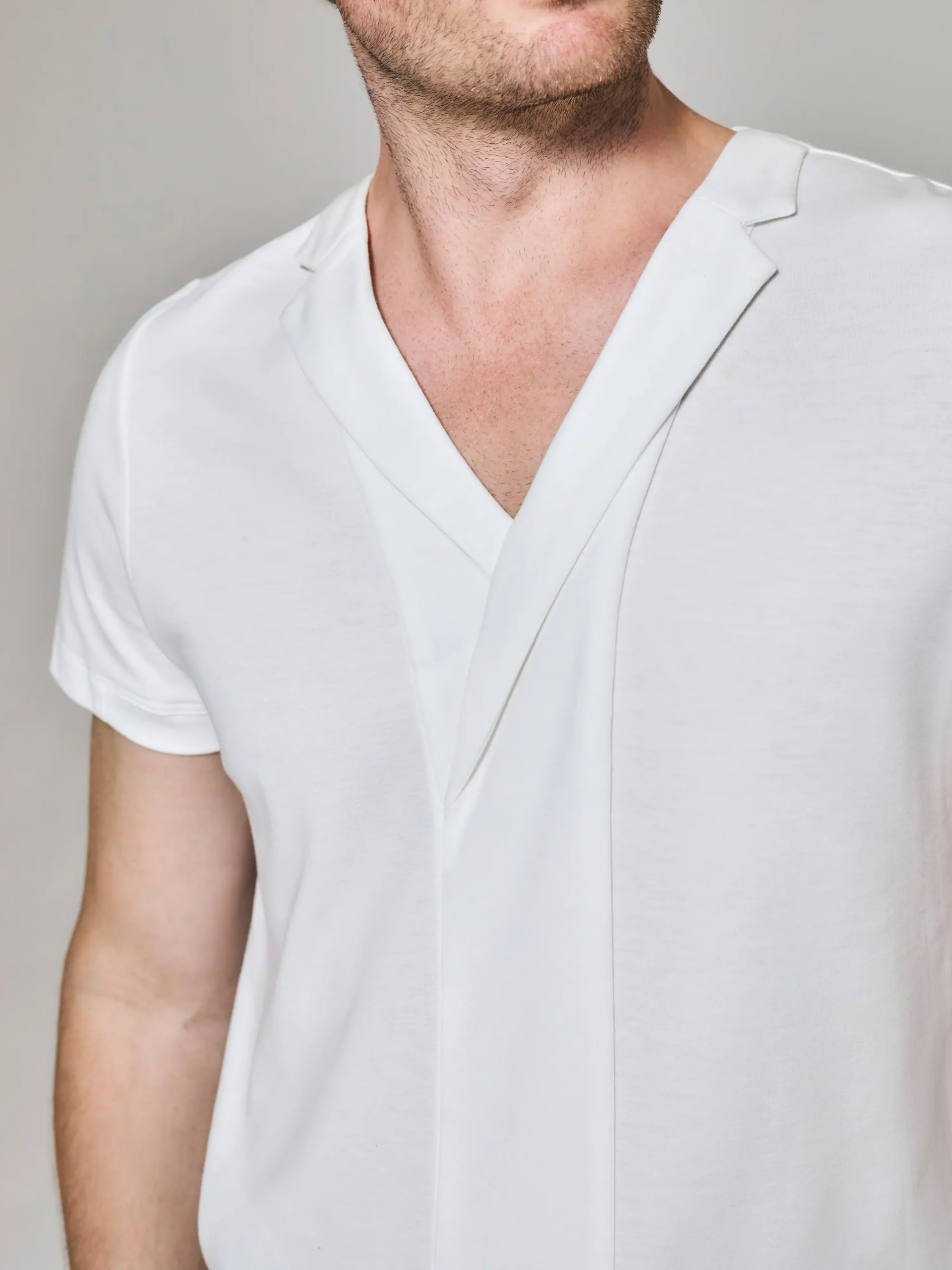 Style No: 0001 | Asymmetric Lapel Bib Cotton T-Shirt
