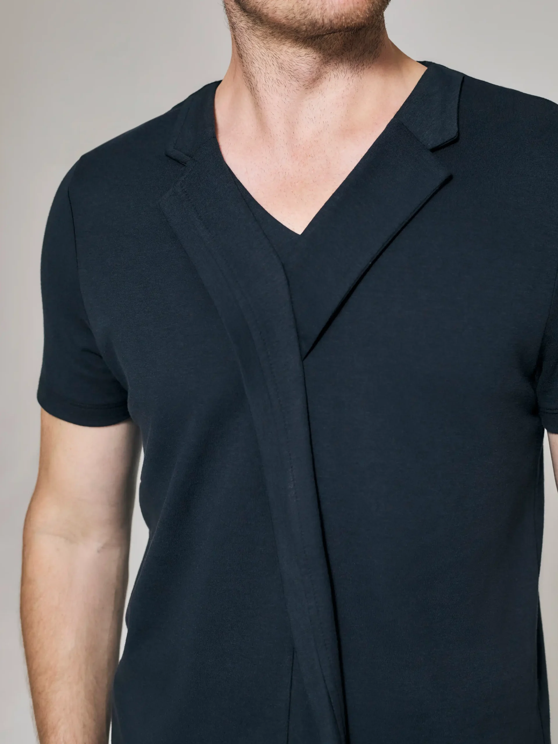 Style No: 0062 | Asymmetric Lapels Insert Cotton T-Shirt