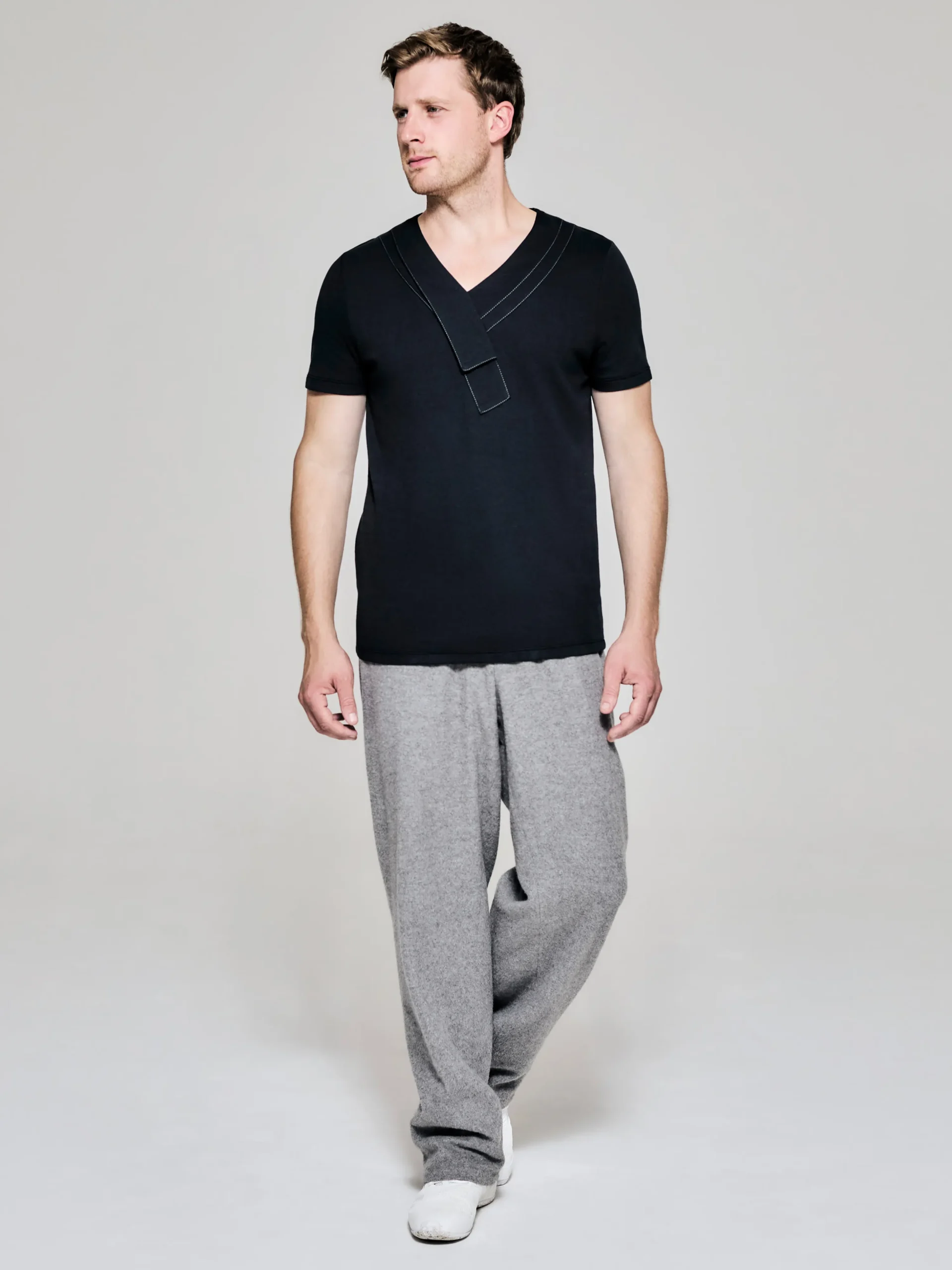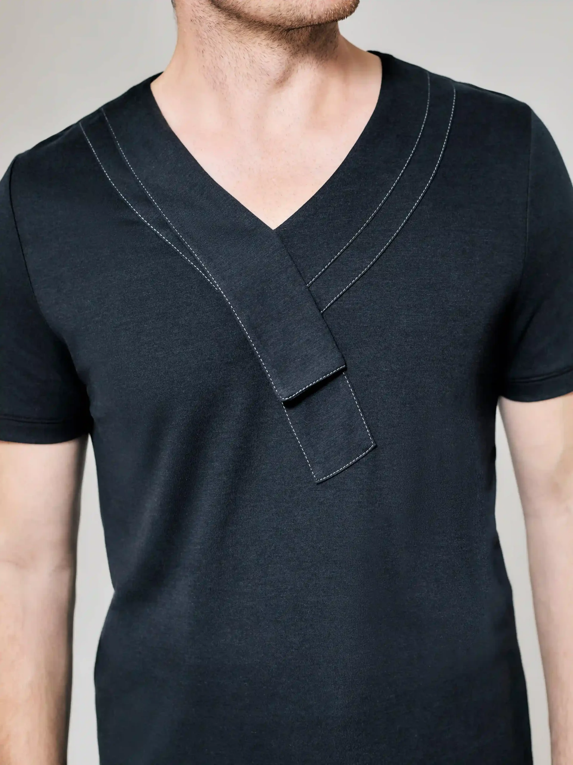 Style No: 0001 | Asymmetric Lapel Bib Cotton T-Shirt